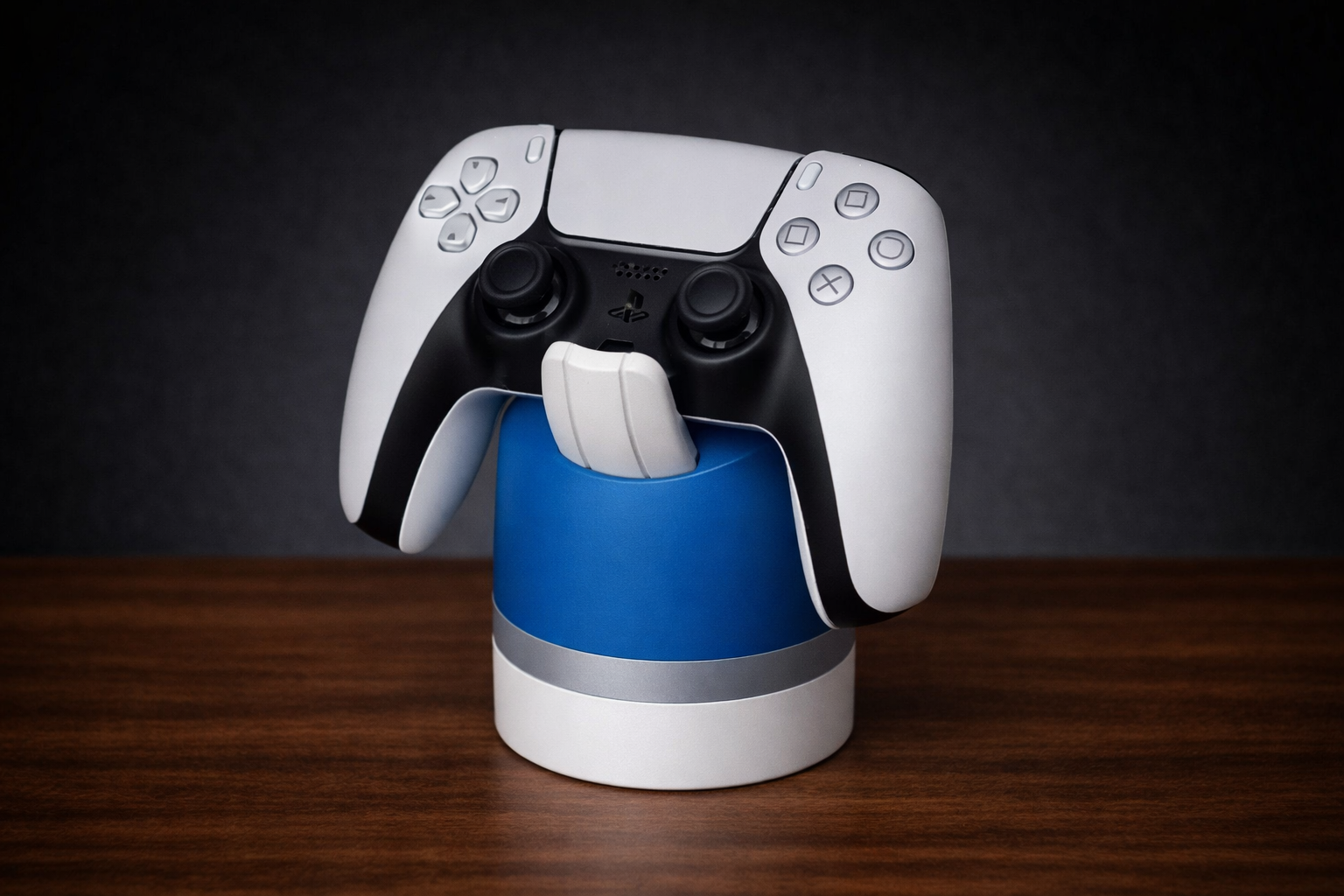 Stylish PS5 DualSense controller holder that keeps your controller secure, organized, and displayed on your desk or gaming setup. A must-have gaming accessory for PlayStation fans.