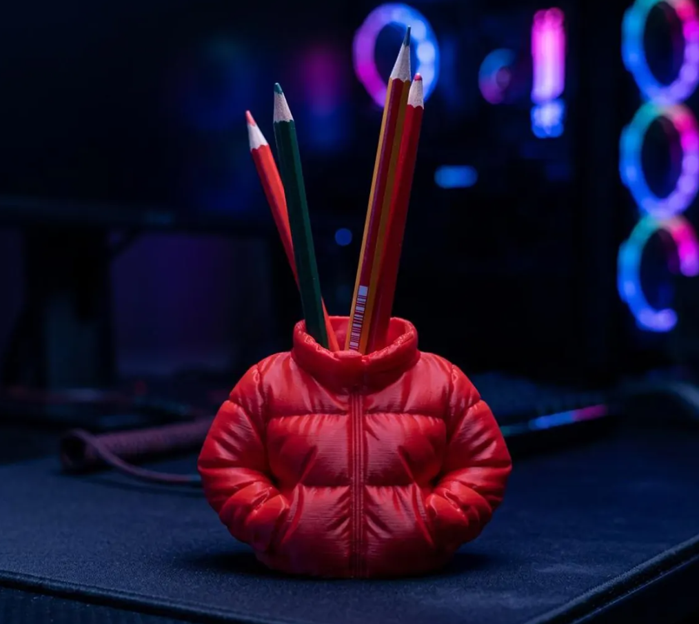 Add some personality to your workspace with this adorable 3D printed jacket pencil holder! This charming desk organizer brings a touch of whimsy to any office, classroom, or study space. The detailed jacket design features realistic zipper lines and pocket details that make it look like a miniature piece of clothing ready to hold all your writing essentials.